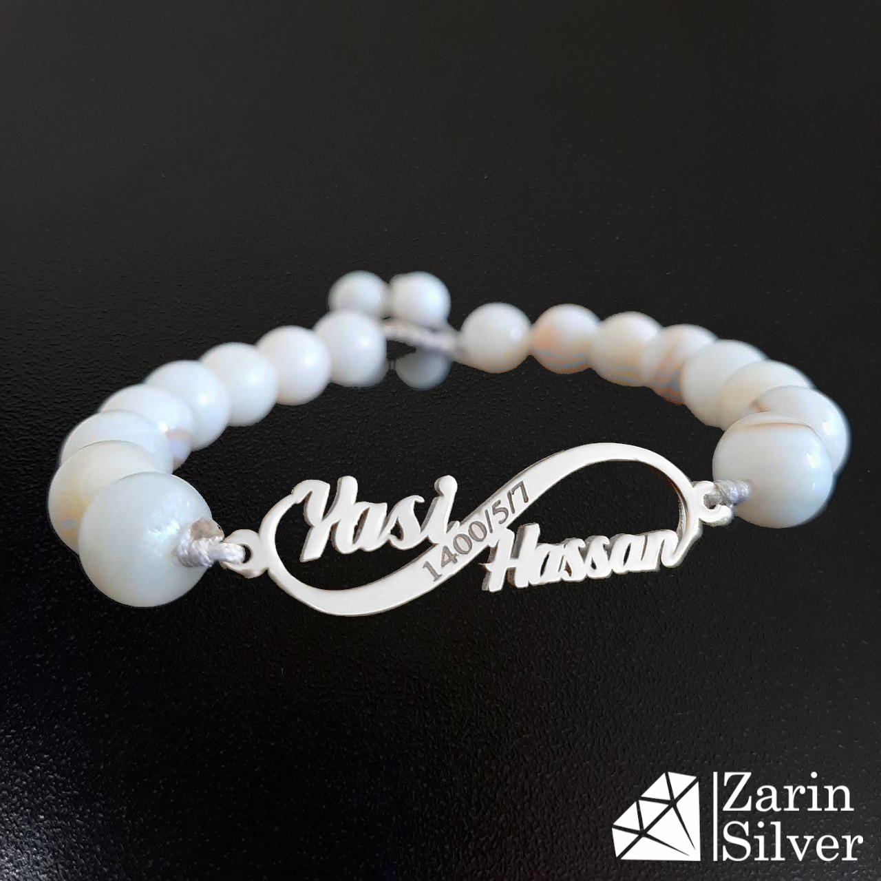 دستبند نقره با سنگ اسم یاسی و حسن