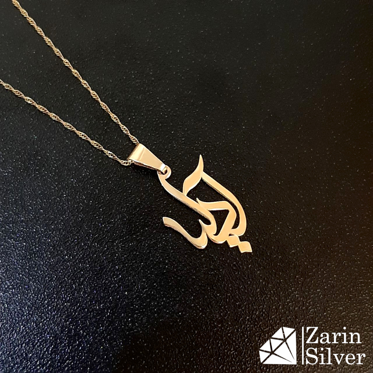 گردنبند نقره اسم آدلیا با نقره 925 عیار و طراحی نستعلیق توسط گروه زرین سیلور ساخته شده است. این گردنبند نقره ساده به صورت عمودی طراحی شده است و شما میتوانید آن را با هر اسمی سفارش داده و از آن به عنوان هدیه ولنتاین، هدیه روز دختر و … استفاده کنید