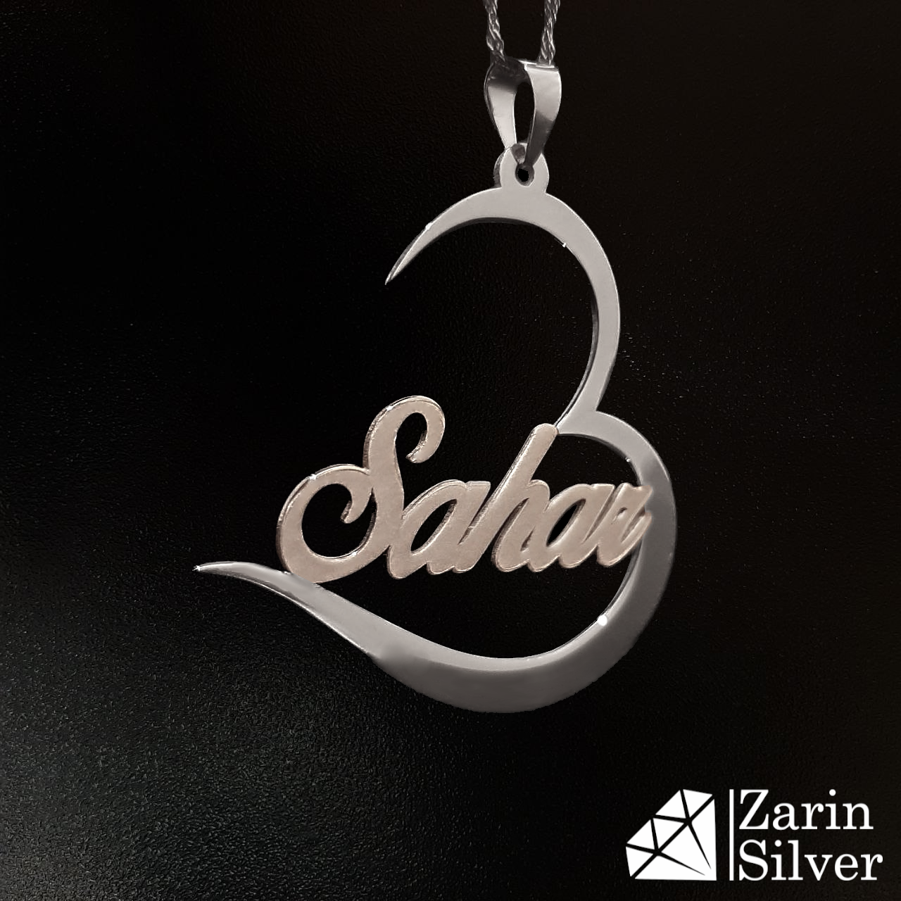 پلاک نقره دخترانه اسم به تنهایی خیره کننده است و لی وقتی با قلب ترکیب می شود، محبوبیت آن نیز افزایش می یابد. در این گردنبند نقره ظریف، اسم سحر داخل قلب قرار گرفته است و مات و براق بودن آن باعث شده اسم سحر بیشتر به چشم بیاید. شما نیز میتوانید این نوع گردنبند نقره زنانه را با هر اسمی که مد نظرتان است سفارش داده و از استفاده از آن لذت ببرید