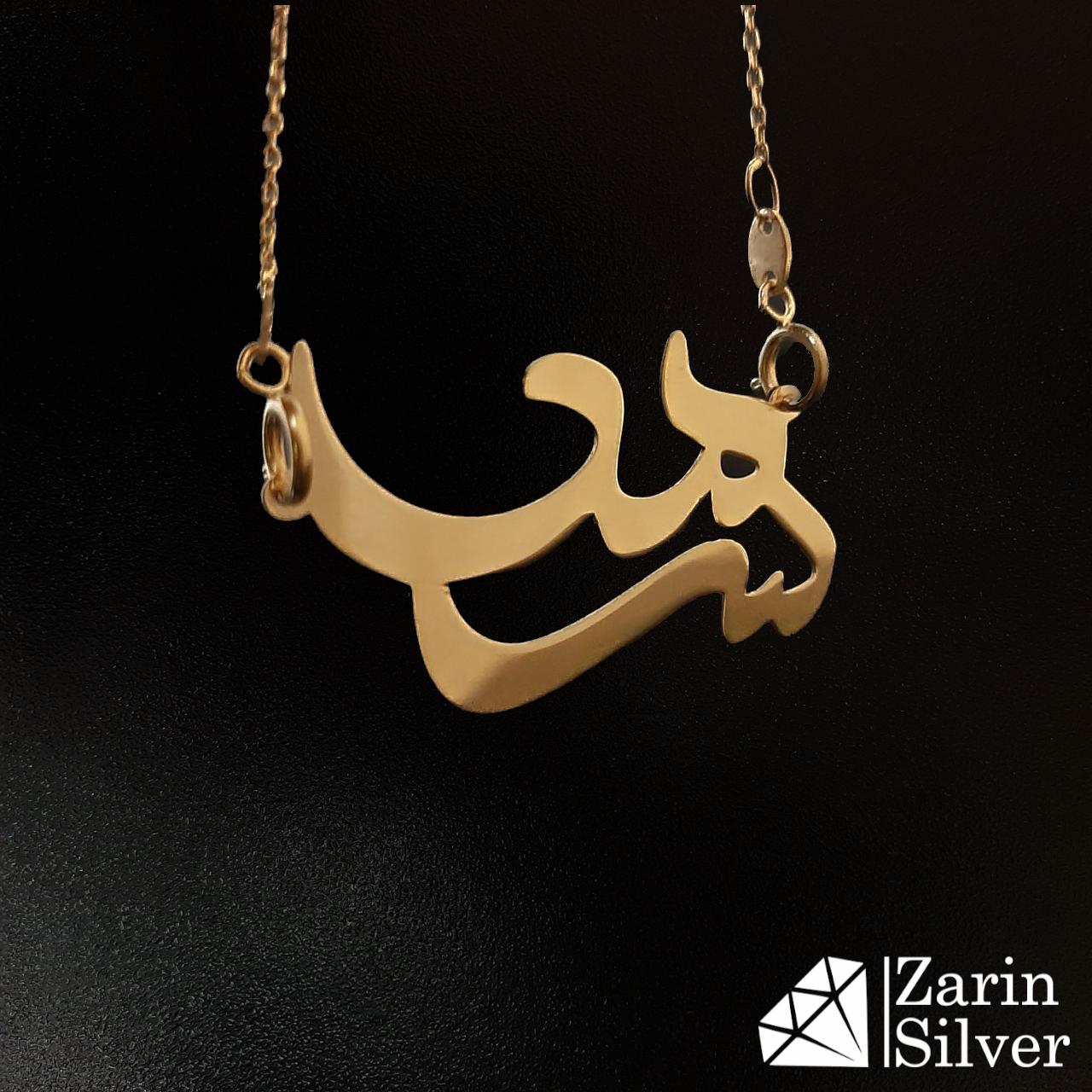 پلاک نقره اسم سرمد به زبان فارسی و خطوط نستعلیق طراحی شده است. این پلاک نقره دخترانه به صورت افقی ساخته شده که نتیجه آن حلقه طرفین بودن است. شما نیز میتوانید گردنبند نقره زنانه خود را به هر اسمی و با هر زبانی سفارش داده و از استفاده آن لذت ببرید