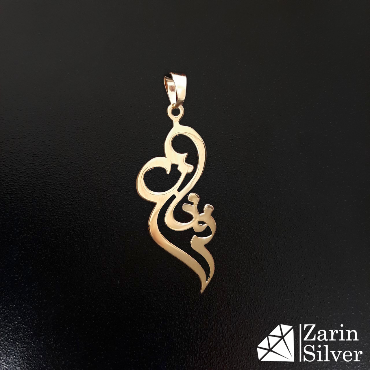 پلاک نقره اسم فرناز ساخته شده با نقره استرلینگ. پیچش ها و چرخش حروف در طرح اسم تاثیر بسزایی در نمای آویز نقره داشته است. برای این آویز نقره میتوانید از بین مجموعه بزرگی از سنگ های نیمه قیمتی و زنجیر های نقره، مورد دلخواه خود را انتخاب کنید.