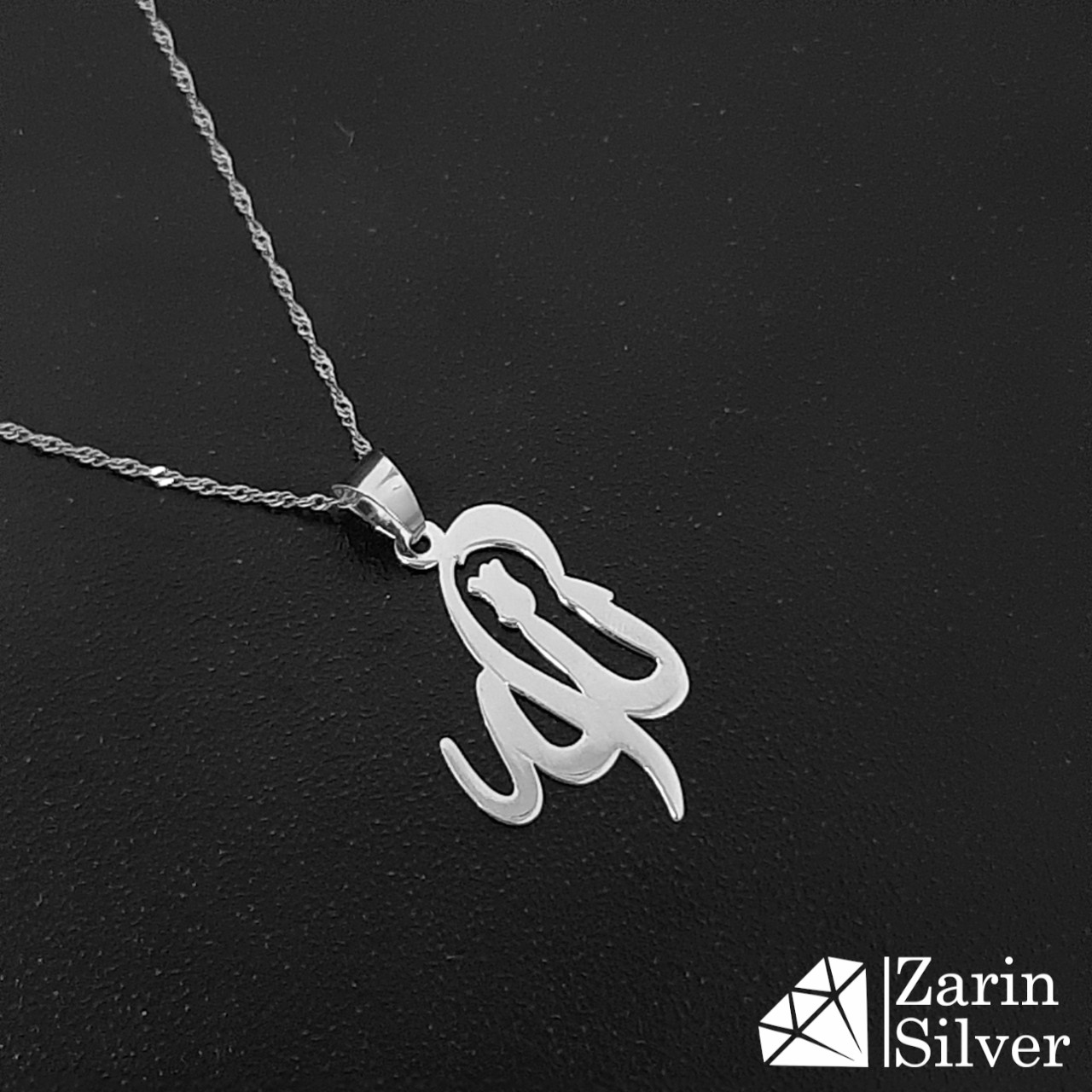 پلاک نقره طرح الله با نقره استرلینگ ساخته شده است و طراحی آن توسط گروه زرین سیلور انجام شده. شما میتوانید طرح دلخواه خودتان را به صورت پلاک نقره داشته باشید. در این آویز نقره مردانه به جای علامت تشدید از گل لاله استفاده شده که به طرح الله زیبایی بیشتری بخشیده است.