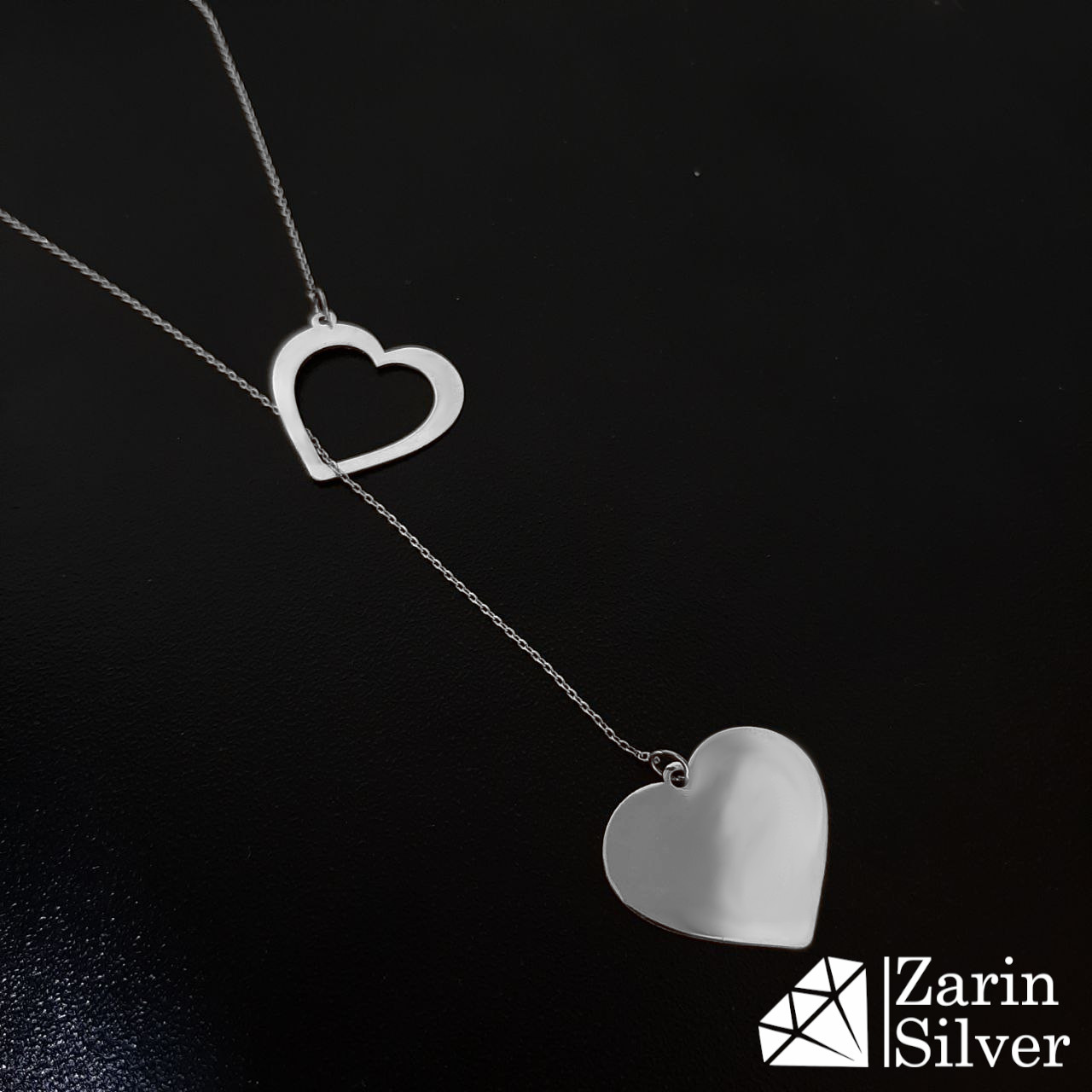 گردنبند نقره زنانه مدل لاریت با آویز های قلب