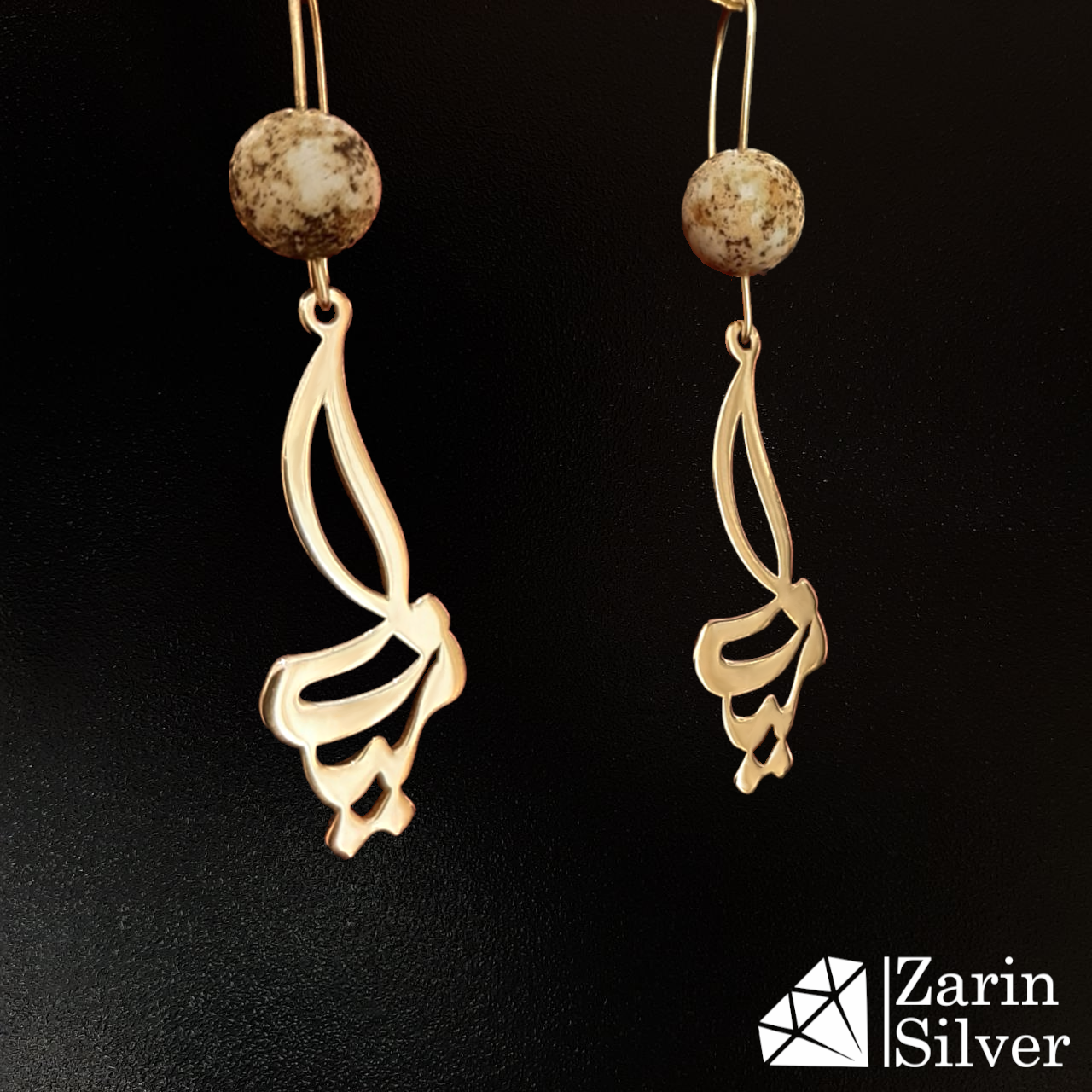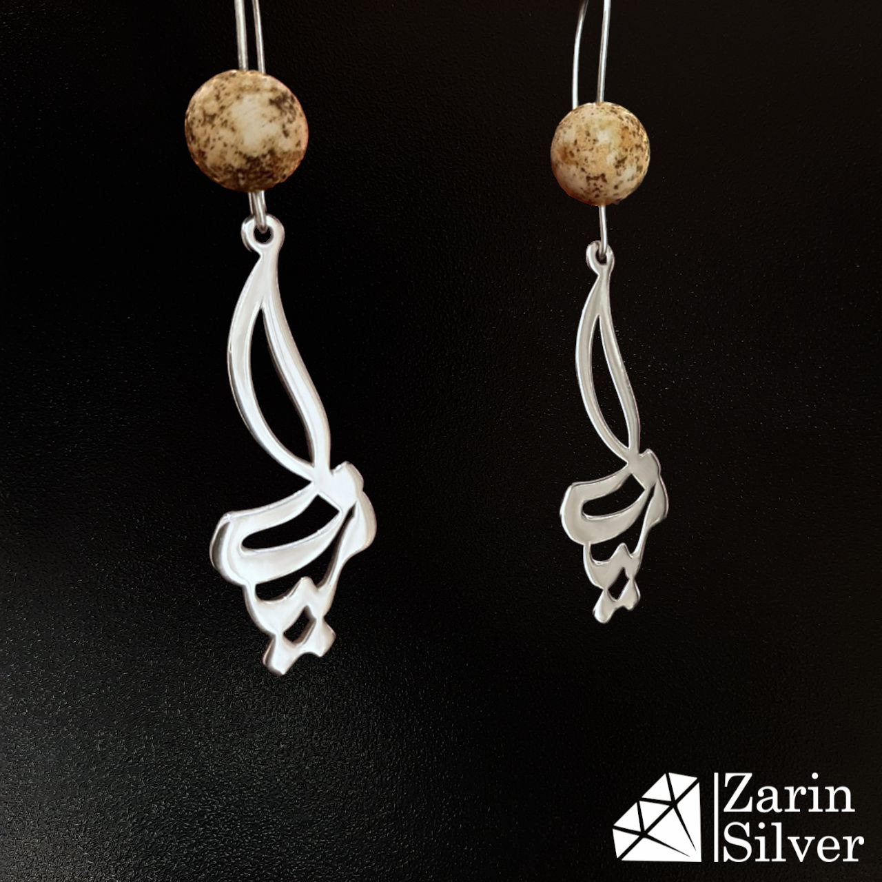 گوشواره نقره دخترانه اسم مینا با طراحی نستعلیق و نقره 925 عیار ساخته شده است. یک سنگ مارکوف روسی در بالای این گوشواره نقره زنانه قرار گرفته که کنتراست رنگی زیبایی با نقره ایجاد کرده و آن را مناسب به هدیه دادن به خانم ها کرده است. قفل این گوشواره نقره 925 عیار قفل عصایی بوده که بهترین قفل برای استفاده روزانه است