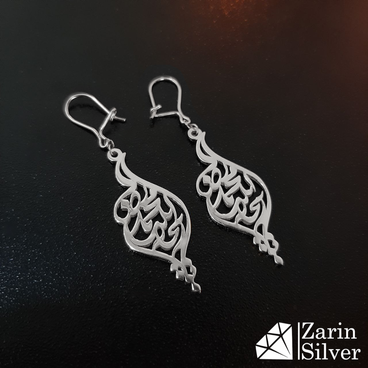 این گوشواره نقره از نقره 925 و با خطاطی نستعلیق طراحی شده است تلفیق اسامی محمد رضا، ایلیا و ریحانه که اعضای یک خانواده اند، در یک گوشواره نقره عصایی نشان دهنده عشق و محبتی است که در میان اعضای این خانواده در جریان است