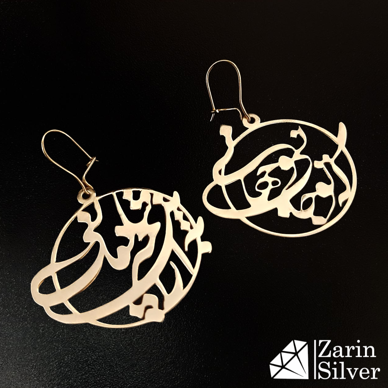 شعر ( به از این چه شادمانی که تو جانی و جهانی) با خطوط نستعلیق و داخل فریم دایره طراحی شده و در انتها به گوشواره نقره دخترانه تبدیل شده است