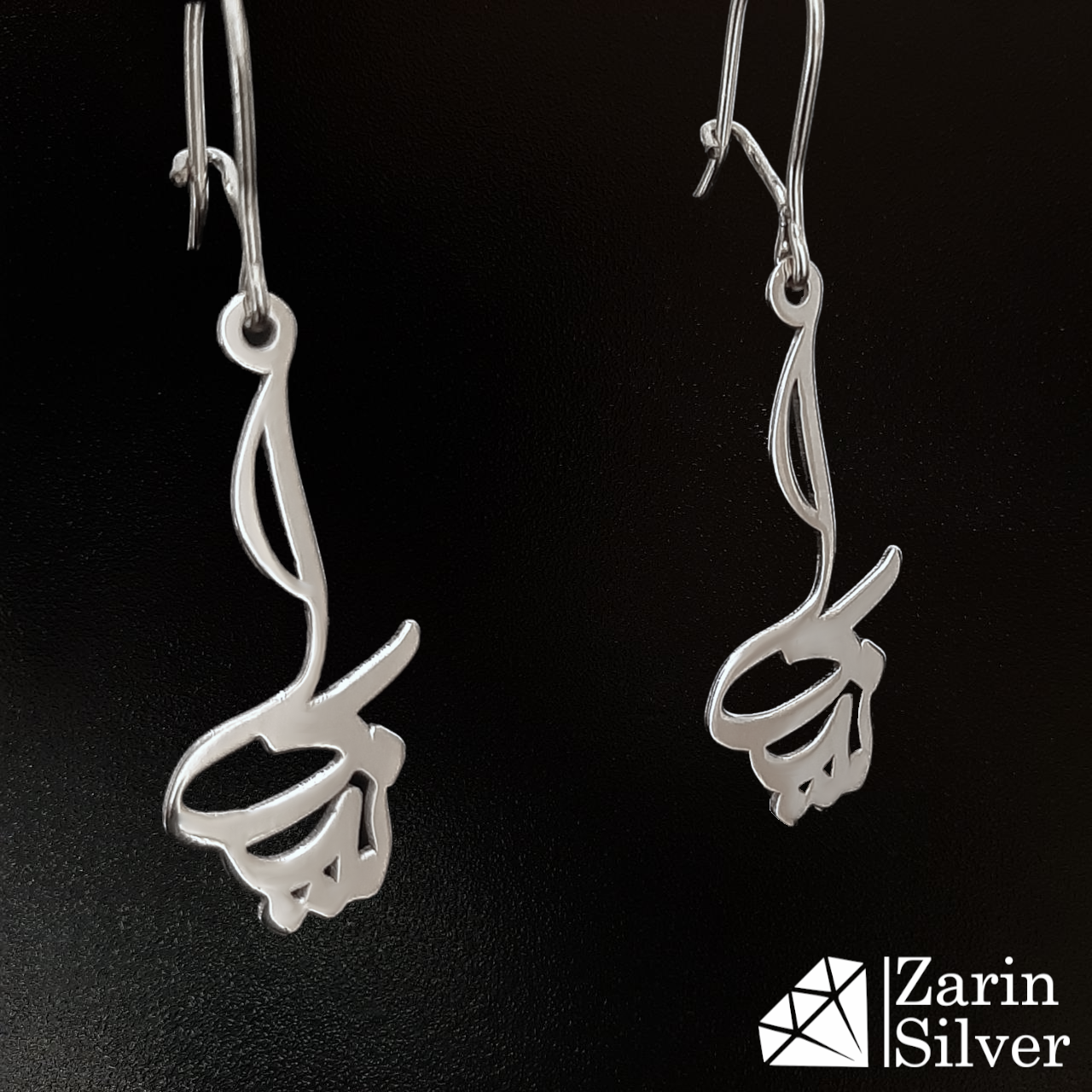 این گوشواره آویز نقره با نقره 925 عیار و طراحی نستعلیق ساخته شده است. قفل این گوشواره نقره دخترانه، قفل عصایی است که احتمال افتادن آن از گوش صفر است و در نتیجه مناسب استفاده روزمره است و شما میتوانید با خیلی راحت از آن استفاده کنید