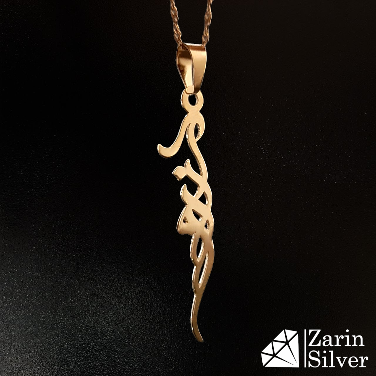 این گردنبند نقره به زبان فارسی و با خط نستعلیق طراحی شده و حروف اسم آرزو به صورتی در کنار یکدیگر قرار گرفته اند که حالتی ناخوانا به پلاک نقره اسم بخشیده اند به طوی که شاید پلاک بسیاری از انسان ها قادر به خواندن اسم آرزو در این پلاک نقره نباشند
